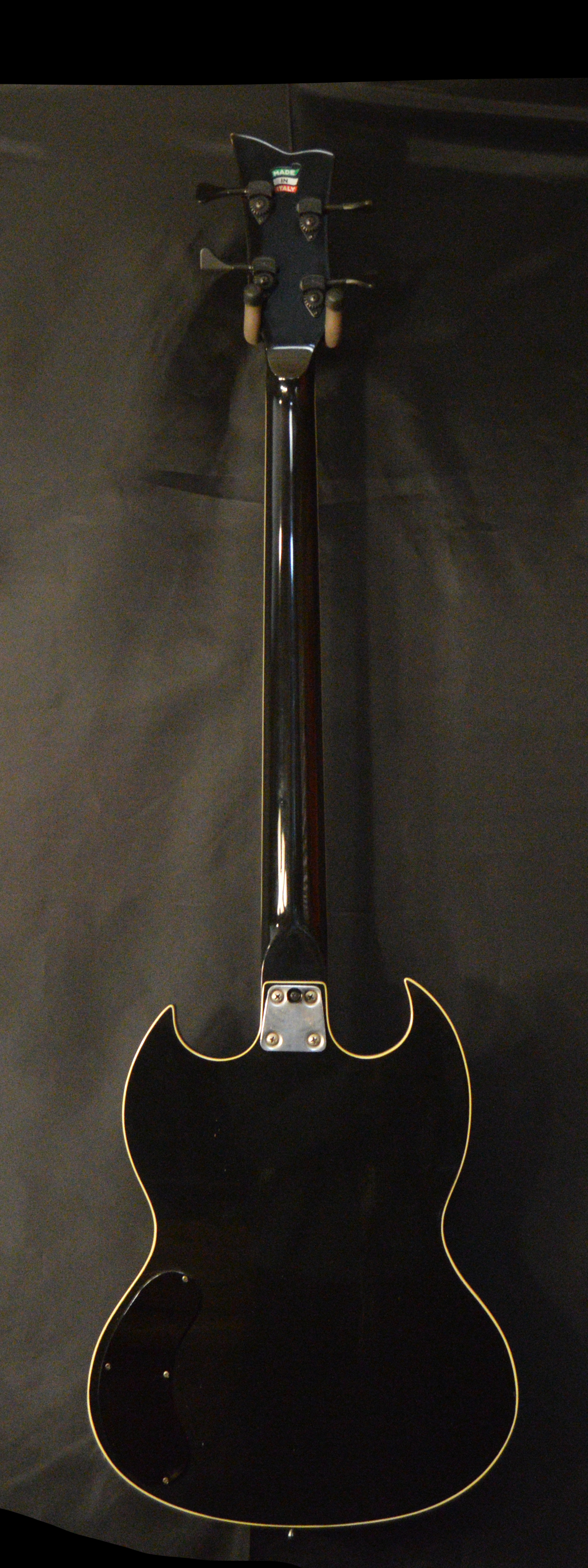 Eko Indie SG bass circa 1980. Hofner trapeze tailpiece, Vox pickups (vintage), Hipshot tuners, original bridge and electronics. No case.