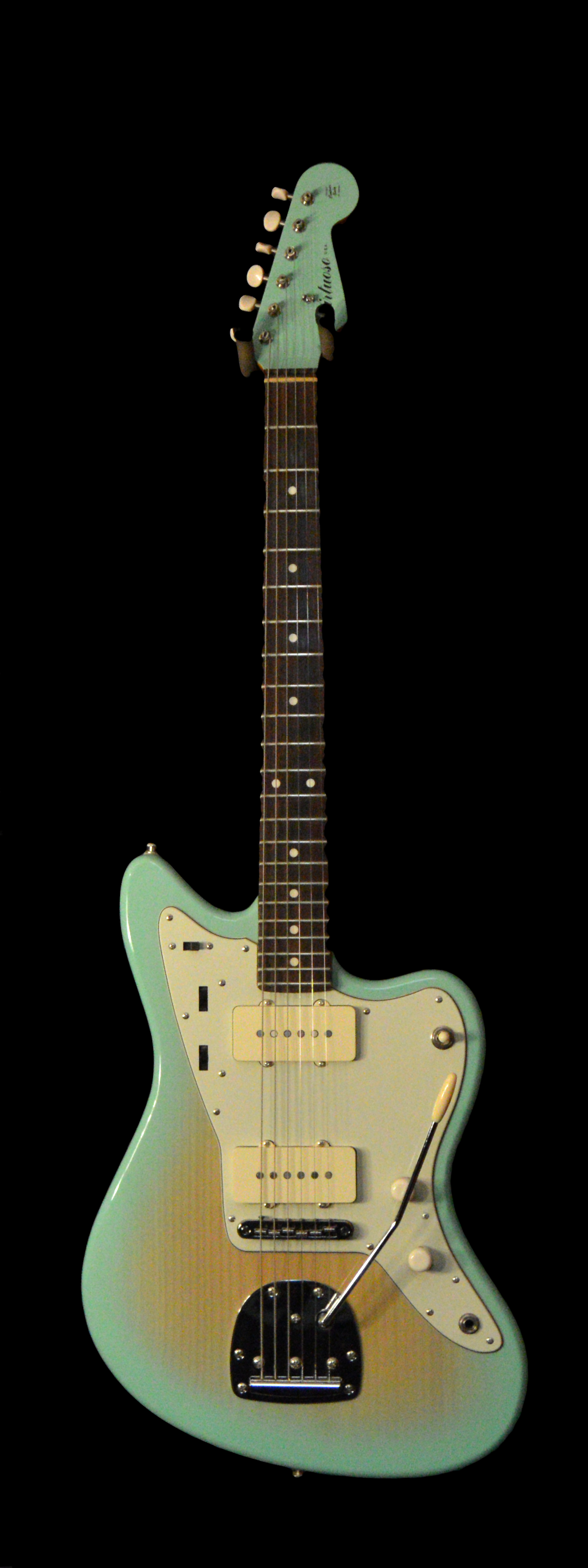 Virtuoso Special JazzyM. One piece handmade Sugarpine body, Allparts maple/rosewood neck, GFS Surfcaster pickups, Traditional style tremolo, tun-o-matic style roller bridge, JM circuits. Hard case included.